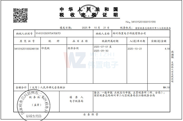 2025年10月21日,偉置電子繳納增殖稅、城市維護(hù)建設(shè)稅若干。